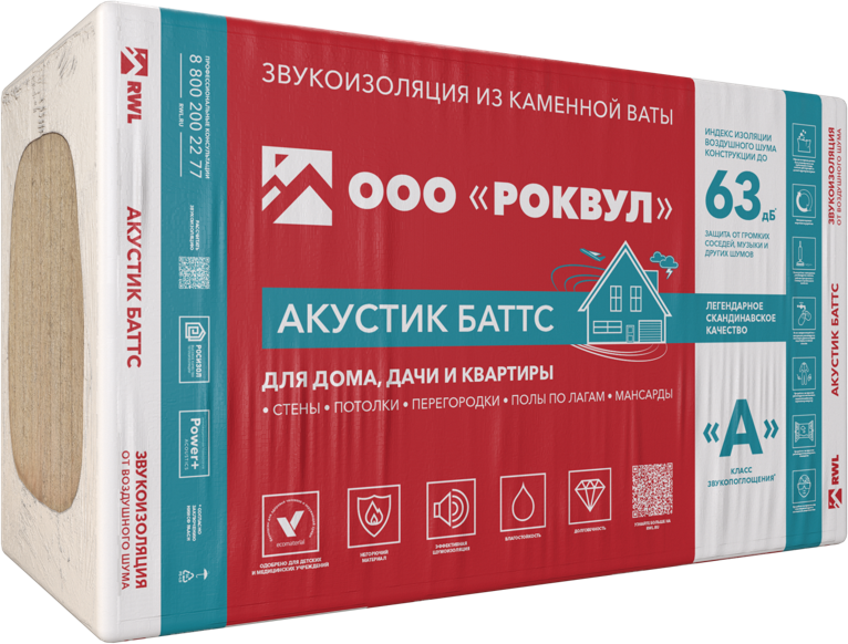 АКУСТИК БАТТС — звукопоглощающие плиты из каменной ваты, обеспечивающие защиту от посторонних шумов, пожаробезопасность и акустический комфорт.