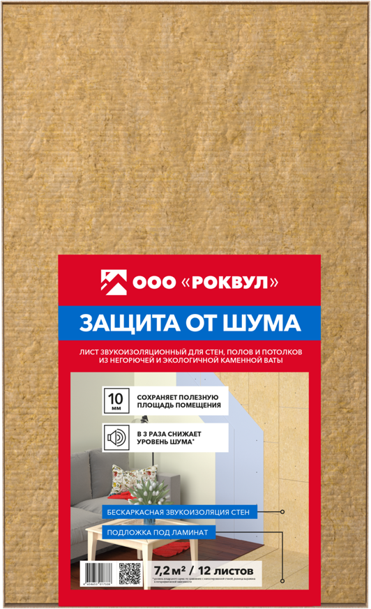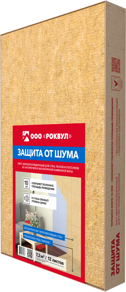 Супертонкое акустическое решение из каменной ваты толщиной всего 10 мм. Эти звукопоглощающие плиты применяются как дополнительная бескаркасная звукоизоляция во внутренней отделке помещений: стен, полов и потолков; а также как подложка под ламинат. Материал абсолютно экологичный и пожаробезопасный, может использоваться в детских комнатах и медицинских учреждениях.
