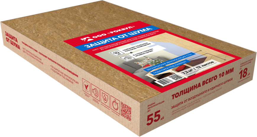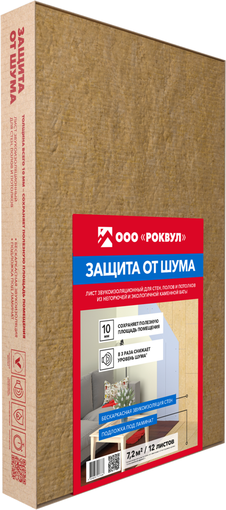 Супертонкое акустическое решение из каменной ваты толщиной всего 10 мм. Эти звукопоглощающие плиты применяются как дополнительная бескаркасная звукоизоляция во внутренней отделке помещений: стен, полов и потолков; а также как подложка под ламинат. Материал абсолютно экологичный и пожаробезопасный, может использоваться в детских комнатах и медицинских учреждениях.