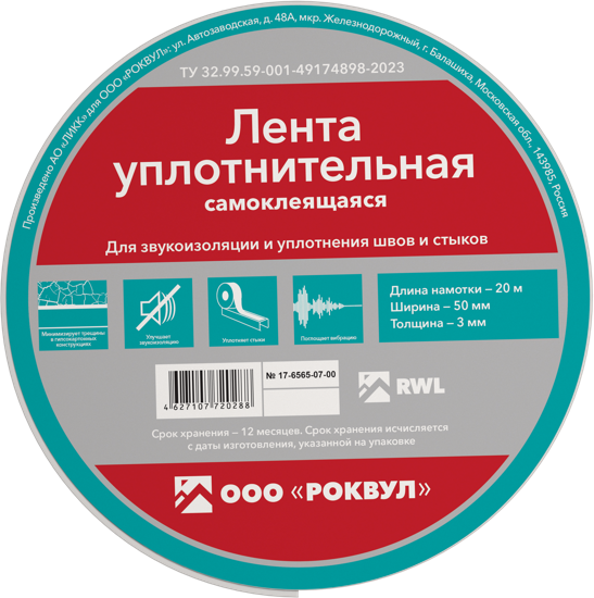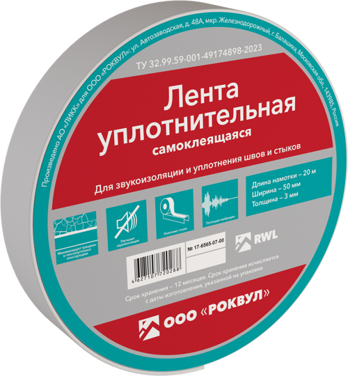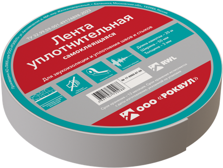 Уплотнительная лента - лента самоклеящаяся односторонняя на основе вспененного полиэтилена, используется для виброизоляции и уплотнения швов и стыков в лёгких каркасных конструкциях со звукопоглощающим слоем из каменной ваты. Предназначена для плотного сопряжения металлических профилей каркаса облицовок и перегородок с несущими строительными конструкциями в местах примыкания, с сохранением требуемых звукоизоляционных свойств.
