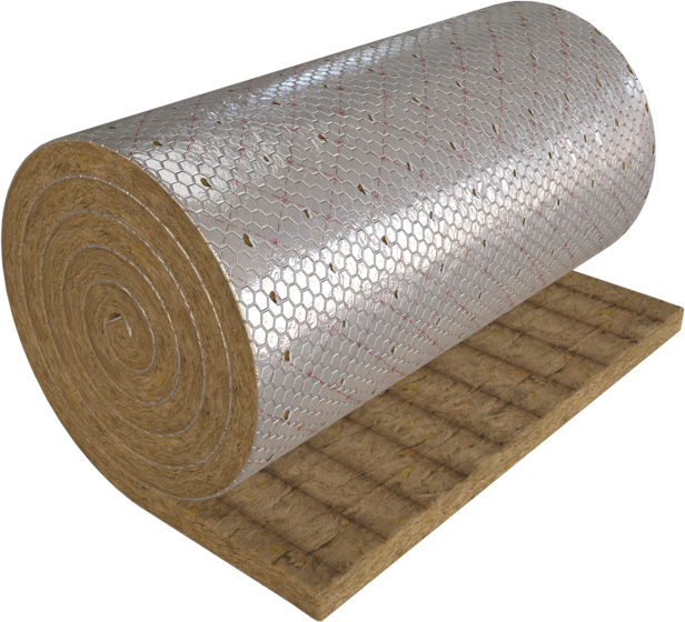 Прошивные маты ВАЙРЕД МАТ 105 Кф1 представляют собой рулонированные изделия из каменной ваты с односторонним покрытием сеткой из стальной оцинкованной проволоки и покрытием из неармированной алюминиевой фольги.